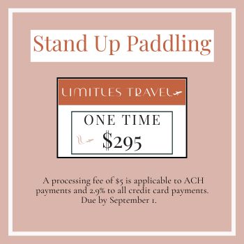 This $295 ticket will secure your stand up paddling spot. A processing fee of $5 for ACH and 2.9% for credit cards applies to all payments.